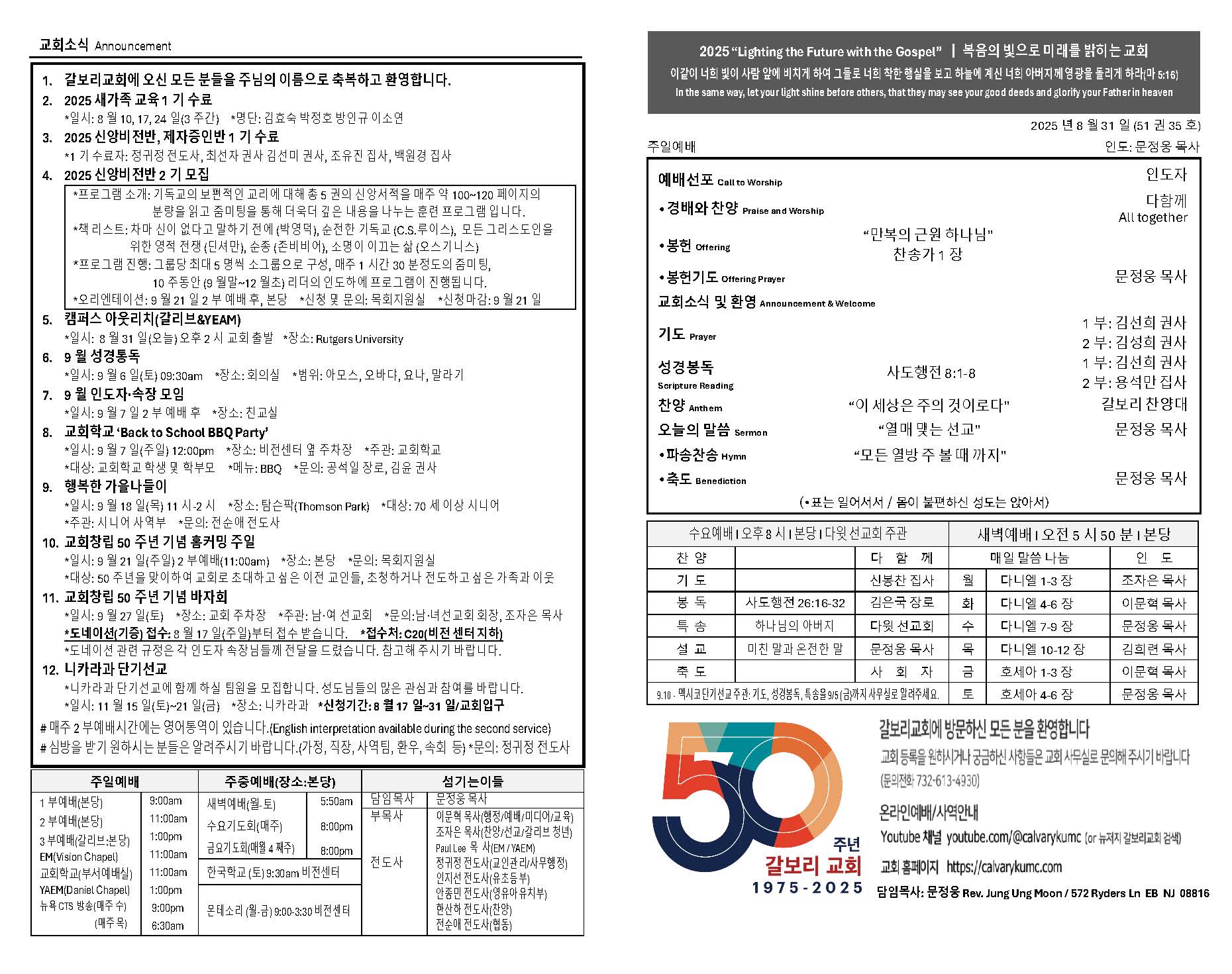 20250831 Publish on August 30,2025 | 관리자 페이지 정보 작성자 관리자 댓글 0건 조회 249회 작성일 25-08-30 14:10 목록 본문 20250831 이전글20250907 25.09.12 다음글20250824 25.08.30 댓글 0 댓글목록 등록된 댓글이 없습니다. 목록